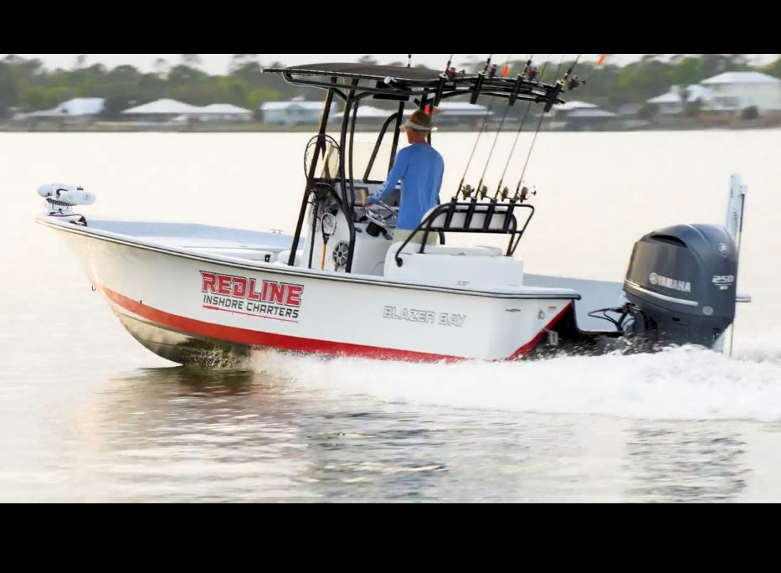 The Blazer Bay 2400 is one of the largest and most versatile bay boats available. Regardless of what mother nature throws at us, the 2400 will deliver a smooth and remarkably dry ride. You’ll have plenty of room to fish from the giant front casting deck and spacious interior. The 2400 allows anglers to fish comfortably in many different scenarios ranging from skinny water to choppy seas. The boat is equipped with a Yamaha 250, top of the line Garmin electronics, and a Minn-Kota I-pilot trolling motor. The boat is cleaned meticulously daily, and will be in immaculate condition upon your arrival.